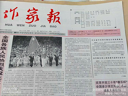 本网电讯(《作家报》记者李法明李淑刚特约记者张伟锋报道)2024年11月29日,国家大型报刊《作家报·拥军大使》(双月刊)专刊创刊发行,诗坛泰斗,《作家报》名誉顾问,中宣部原副部长贺敬之老领导欣然担任该专刊顾问。
